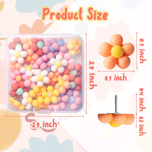 BkeeCten 30PCS Boho Daisy Flowers Push Pins Decorations Colorful Floret Thumbtacks Decorative Flower Pushpins Pink Flower Thumb Tacks for Cork Board Bulletin Board Photo Wall Thumbtack Supplies