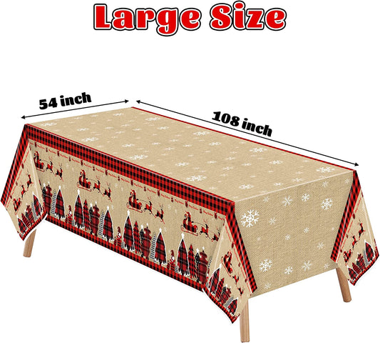 BkeeCten 3 Pack Merry Christmas Plaid Tablecloth Decoration, Vintage Buffalo Plaid Plastic Rectangle Disposable Tablecover for Xmas Winter Holiday Birthday Party Table Cloth Decor Supplies, 108x54Inch