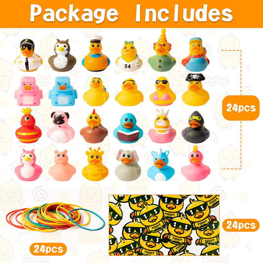 BkeeCten 24Set You've Been Ducked Card with Rubber Ducks and Strings Duck Duck Tags for Hiding Rubber Ducky Design Ducking Game Card with Hole Rubber Band for Car Street Toy Party Game Decor Favors