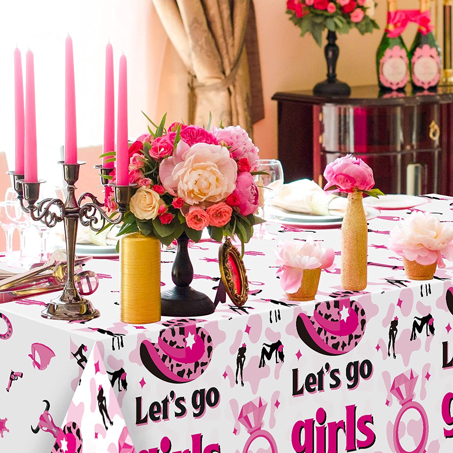 - Exquisite Design: These cowboy tablecloth embellished with comma shaped bandanna, curved horseshoes and pink cowgirl boots,full of western cowgirl style, the festive pink color making your table look more beautiful for your themed party.